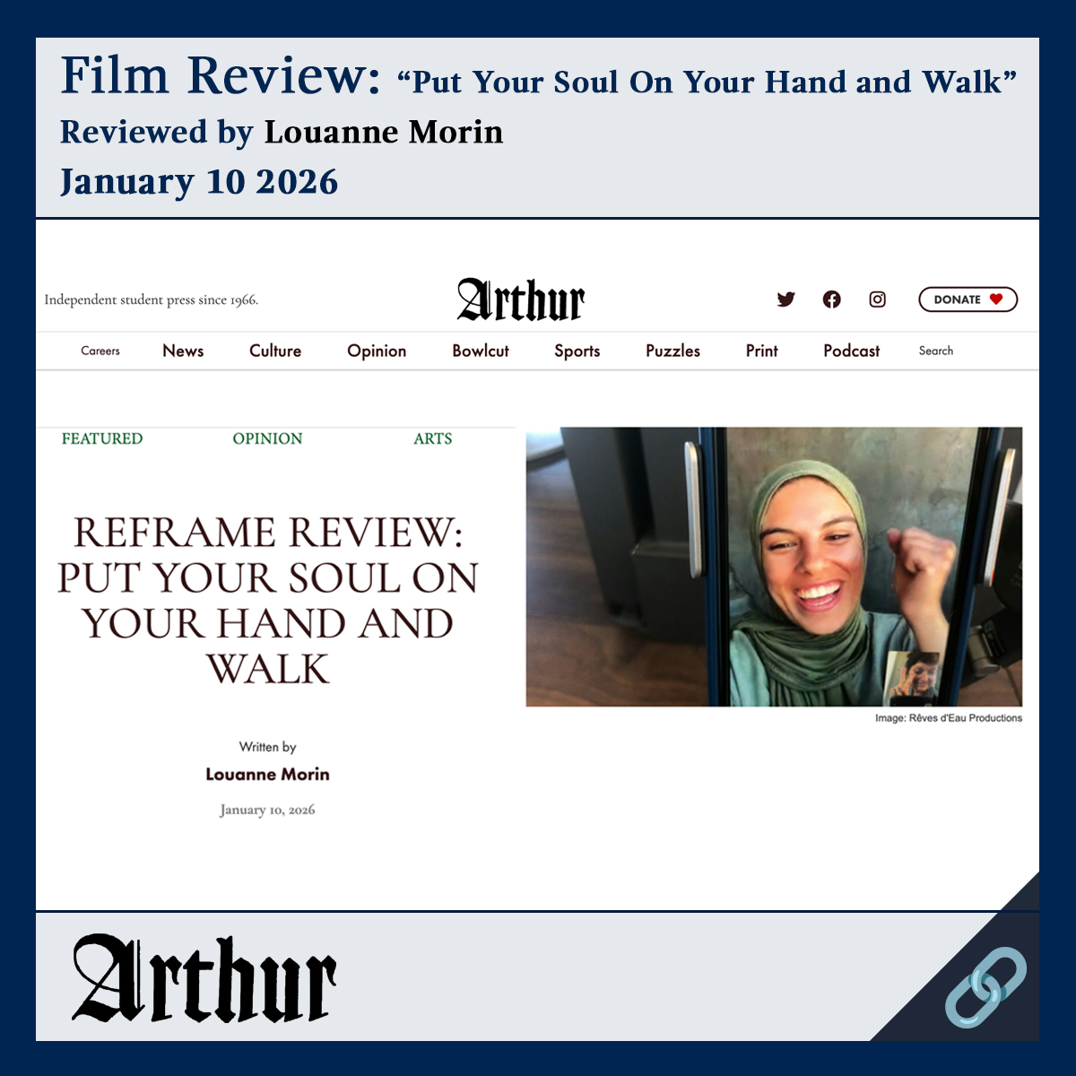 FILM REVIEW: Put Your Soul On Your Hand and Walk Categories News Tags Arthur Read article on Arthur >